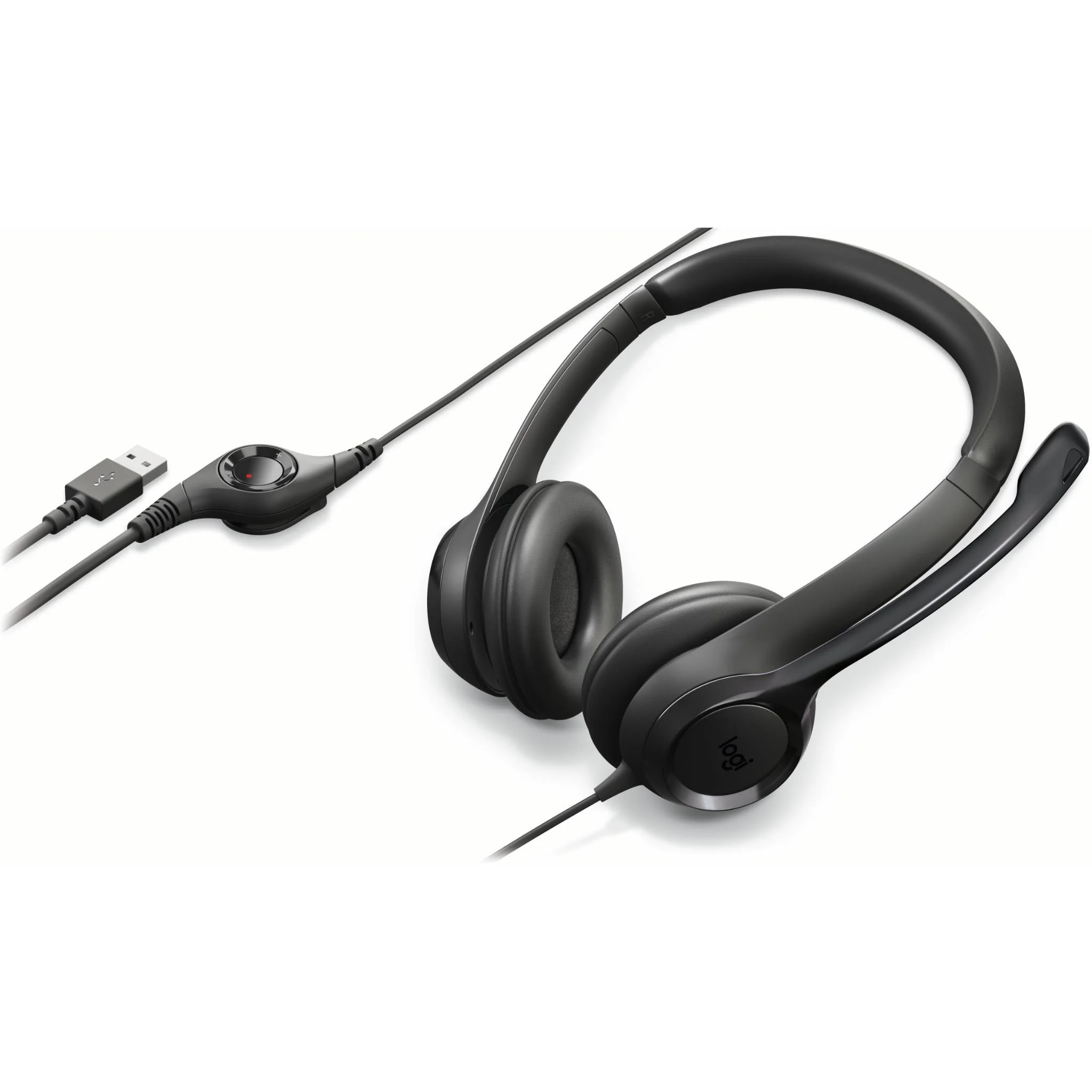 The adjustable headband of Logitech H390 USB Headset contains swivel-mounted leatherette ear cushions for hours of comfort, and it's also easy to clean.