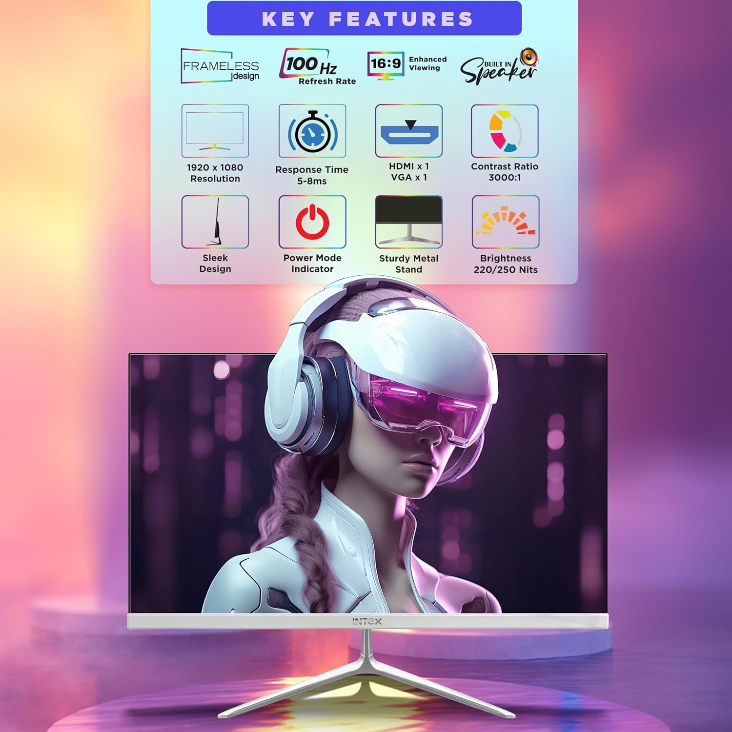 Upgrade your viewing experience with Intex Gaming Monitors, designed to deliver smooth performance, sharp visuals, and immersive gameplay. Featuring a Full HD 1920 x 1080 resolution, these monitors produce clear images, vibrant colours, and excellent contrast for gaming, entertainment, and professional use.