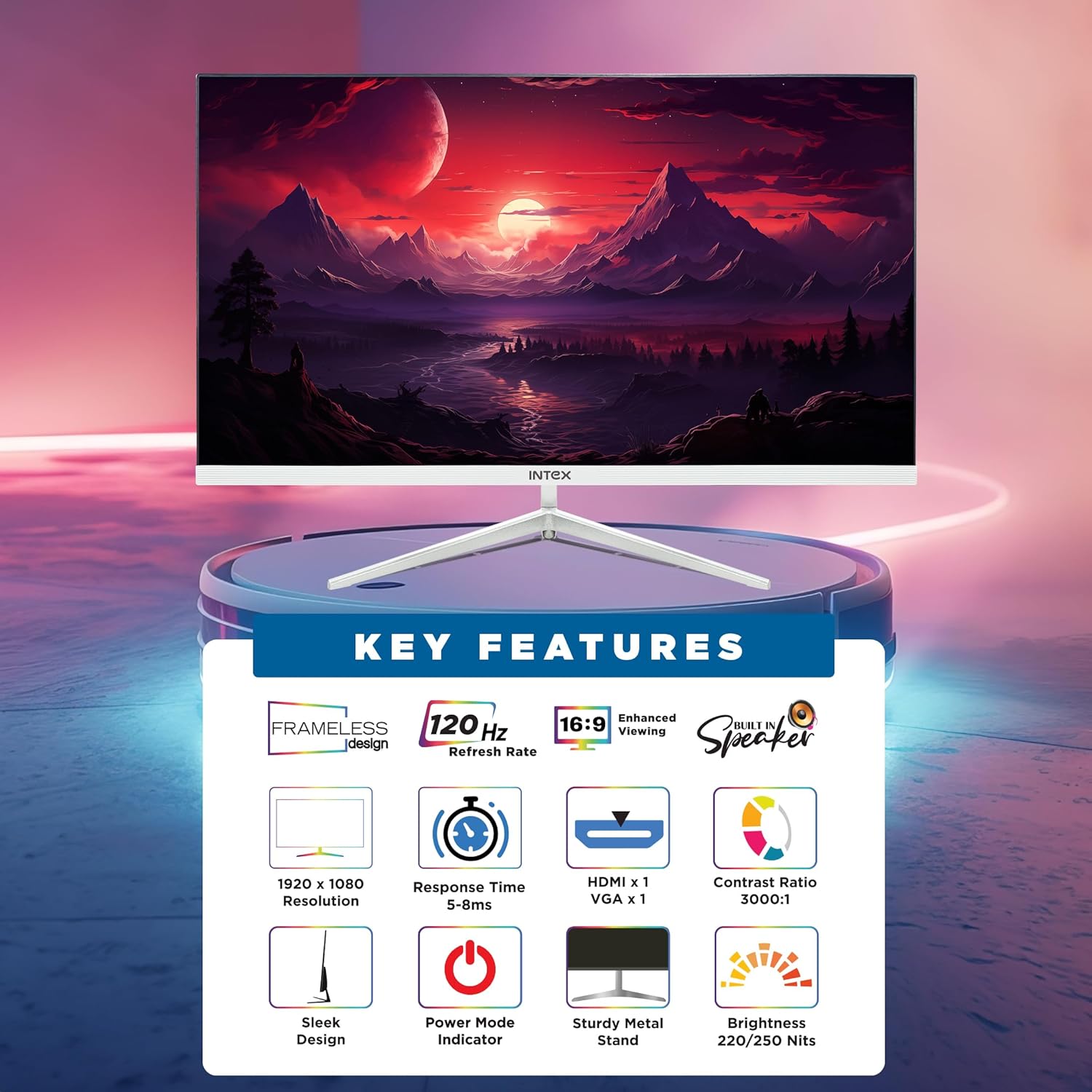 Intex 24 Inch FHD Gaming Monitor IT-1502 | 120Hz | VA Panel | Frameless | Speakers | HDMI + VGA
