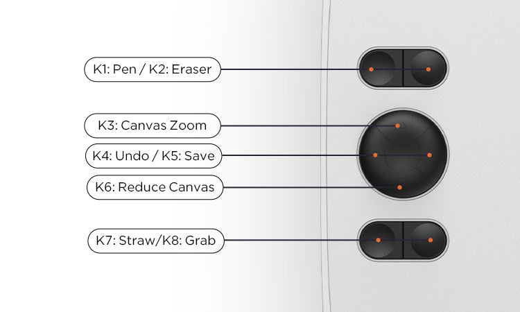 The default settings of shortcut keys are commonly used drawing tools such as pen, eraser, brush size adjustment, and undo, etc. You can also customize the shortcut keys through the computer according to your preferences.