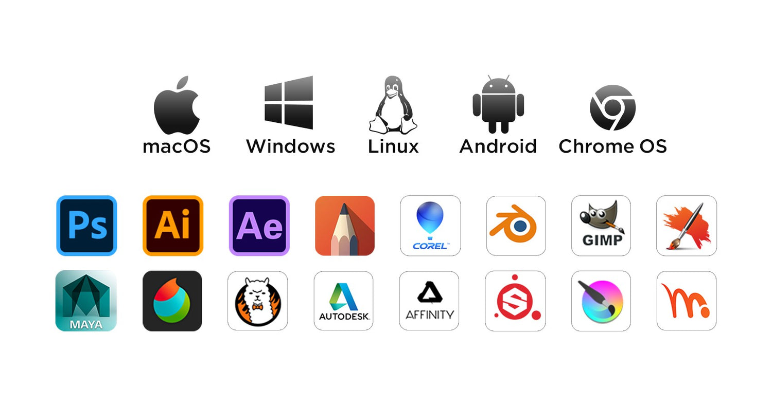 Support Windows 11/10/8/7, Mac OS X 10.13~10.10, Chromebooks (Note: Chrome Os 88.0.4324.109 And Newer Versions Are Required), Android 6 (or latter) and Linux systems. Support Medibang, Clip Studio Paint, SAI, Adobe Photoshop, , Illustrator, Corel Draw, Corel Painter, Sketchbook, Manga Studio, Etc.
